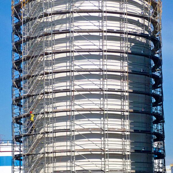 Montajes sobre superficies irregulares o redondeadas: Ideal para tanques, chimeneas, columnas, estructuras arqueadas y cualquier tipo de perímetro no lineal.